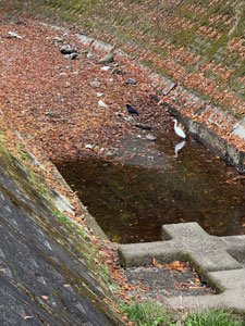 12:30、滝ノ上町を出発。東青梅の大塚山公演山頂で軽いランチをとる。山を北に降りたところに流れているのが霞川。東に歩き師岡町から野上町へ。茶畑が広がるあたりで前方に鬱蒼とした林が見える(図1)。近くに行くと、川の右岸側に高い木や竹が密集している。期待した神社でも城址でもないようだ。このあたりから川は北東方向へ。この川ではサギやカモを時々見ることができる。今寺で見たサギが図2。このあたりからしばらく水面が消える。地中を流れているのだろう。五反田橋のあたりから道がきれいなレンガ敷きとなる。川に降りる広い階段もあり小さな公園だ(図3)。遊歩道は広大な畑の中に伸びていて、振り返ると奥多摩の峰々がよく見える。朝方であれば富士山も綺麗に見えるということだ。藤木橋のあたりの対岸で、数人が大きな望遠レンズを川に向けている。バードウォッチャーが狙っている鳥がこちらからもよく見える(図4)。金子橋からは埼玉県・入間市。JR金子駅に16:09到着。ここまで、16,906歩、12.56kmの快適なウォーキングだった。