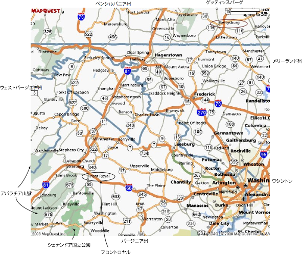 NYからドライブで行くことにした。このコースはメイン州からアラバマ州まで北米東部を縦断するアパラチア山脈に沿っている。そこには、ハイカーに名高い「アパラチアン・トレイル」があるが、われわれはドライブでそれを楽しもう。11の州と1特別区をまわり、往路に2泊、山荘に4泊、復路に2泊である。
