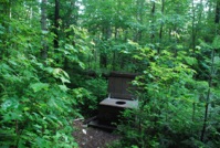 Lean-toにトイレの矢印があるので確認に。茂みにつけられたトレイルを通っていくとさらに2カ所に矢印があり5分ほど歩いて道の行き止まりにトイレを見つけた。木製の箱のふたを上げると穴が開いている。どうやって使うのかな、と一瞬思案。上に乗るには穴が小さい。なるほどこれは西洋式の原型で、座ってするのだと理解。箱もきれいに使われている。一見プライバシーは無いようだけれど、ここに座って向こうから人が来たらハローとか言えば問題ない。自然に囲まれてこれまた得難い体験だ。(ここ以外にトイレの表示は見たことがなかった。もしかしたら、駐車場には熊やトイレのことが表示されていたのかもしれない。掲示板を見てくるべきであった。)