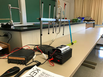 教科書の図を見て作ったらあまりに簡単に成功したので拍子抜け。(誘電コイルでアンテナ付き金属球を放電させてアンテナ付きネオン管を光らせる)文献にあるような金属板のアンテナがなくてもうまくいく。 この実験から「電波」の実用化がスタートしたと思うと感慨深い。 |