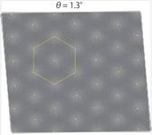 | 2020-8-03 | グラフェンはグラファイトの構成単位で、炭素がヘキサゴナル(六角形)に平面状に並んだもので、2004年に発見された。2018年に、グラフェンを1.1°回転させて積層したものは超伝導性を示すことが見出された。色々な角度で作図してモアレ模様を観察した。 | ![]() θ= 1.3° θ= 1.1° θ= 0.9° θ= 0.7° |
