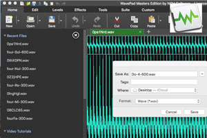 ToneGeneratorで作成した音を、ファイル形式.wav(または.mov3)で