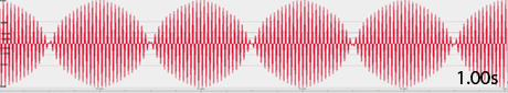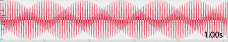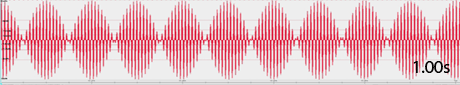 2)「振動数の異なる2個の純音を同時に鳴らした時」の音、波形、うなり、Pitch Anayzerの表示