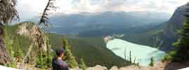 レイク・ルイーズ入り口から歩いておよそ2時間。ビッグビーハイブに立った。湖が青白く見え、湖畔のシャトーホテルがきれいに見えた。 | |||||||
