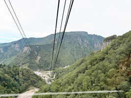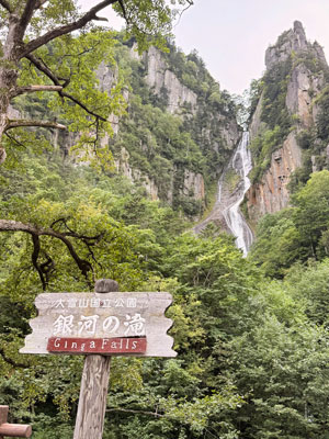 図15 層雲峡の二つの滝 石狩川の北に登山すると二つの滝を見渡す絶好の場所があるらしい。 今回は先を急ぐ。14:45 層雲峡に別れを告げ、糠平に向け出発。