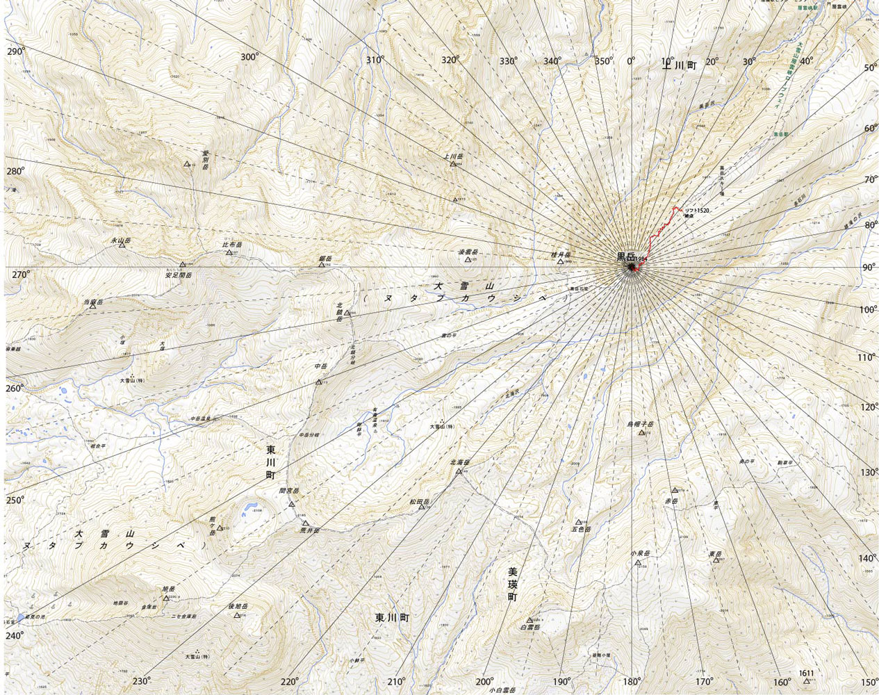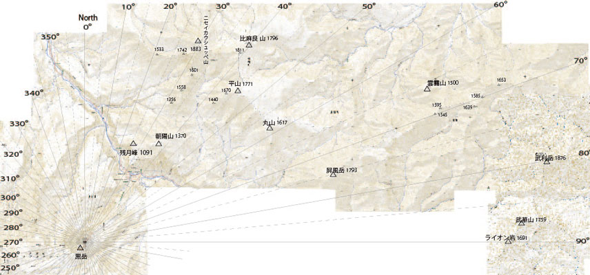 図13 黒岳山頂から北西方向の山座同定に使用した地形図。