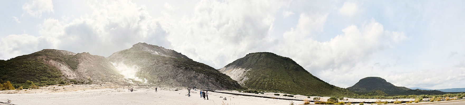 12:00~12:45、硫黄山駐車場に到着。歩いて噴煙近くを散策。