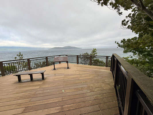 10:30、摩周湖第一展望台に到着。曇り空だが、湖は対岸まできれいに見える。「霧の摩周湖」ではない。