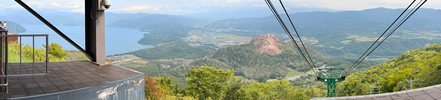 図67 有珠山ロープウェイ山頂駅から、洞爺湖と昭和新山を展望。